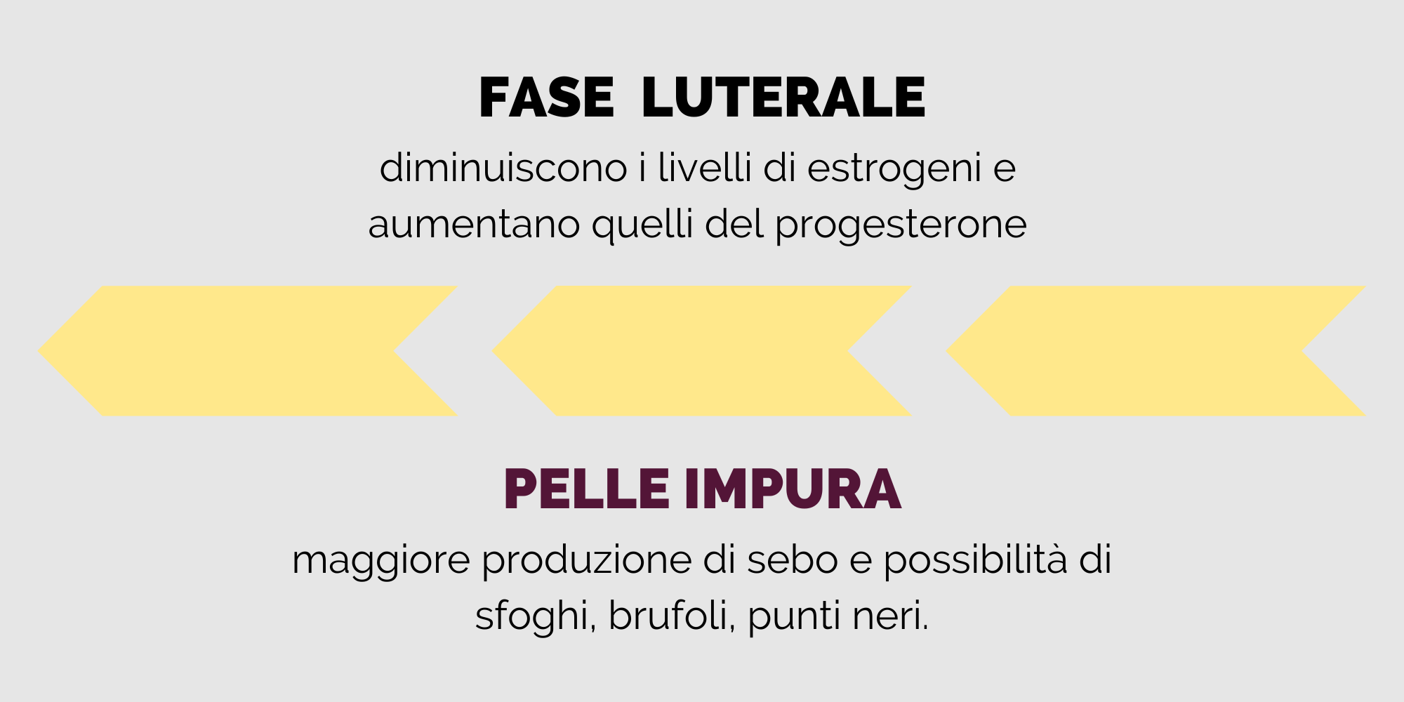 Durante la fase luteale (16°-28°) giorno), diminuiscono i livelli di estrogeni e aumentano quelli del progesterone, con una maggiore produzione di sebo e possibilità di sfoghi, brufoli e punti neri.